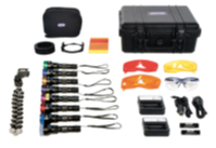 3 ochelari de contrast (roșu, portocaliu, galben), 1 pereche ochelari de protecție UV, 1 încărcător, 1 geantă de transport pentru toate cele trei lămpi și 1 kit filtru cameră criminalistică